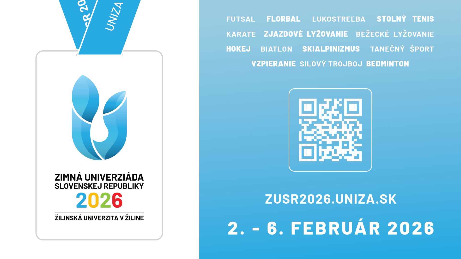 V dňoch 2. - 6. februára 2026 sa uskutoční dlhoočakávaná športová udalosť tohto roka. Fantastické športové výkony, závod s časom a pódiové vystúpenia čakajú všetkých fanúšikov, ktorý môžu počas celého týždňa povzbudzovať vyše 500 športovcov zo slovenských univerzít v 14 športových disciplínach. Zimná univerziáda prinesie na pôdu univerzity jedinečnú športovú atmosféru a zároveň vytvorí priestor na podporu univerzitného športu a aktívneho študentského života. UNIZA tak opätovne potvrdzuje svoj záujem o rozvoj pohybových aktivít a reprezentáciu univerzity na národnej úrovni.