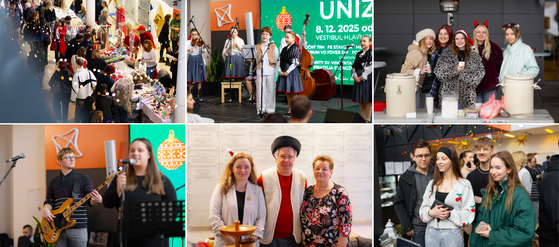 On 8 December, the foyer of the main building was once again beautifully decorated and filled with Christmas cheer, celebrating the most beautiful event of the year, Christmas at UNIZA, which was officially opened by Prof. Ing. Pavol Rafajdus, PhD, vice-rector for science and research at UNIZA. His speech carried a beautiful message – he encouraged each of us to be a source of joy and peace during this Christmas season. Visitors were immersed in the festive mood by songs performed by folklore ensemble Stavbár and Melody Academics. It was also possible to visit MOTIO and the planetarium in the foyer of the Faculty of Civil Engineering, a photo booth, market stalls, and taste traditional cabbage soup and fragrant punch.